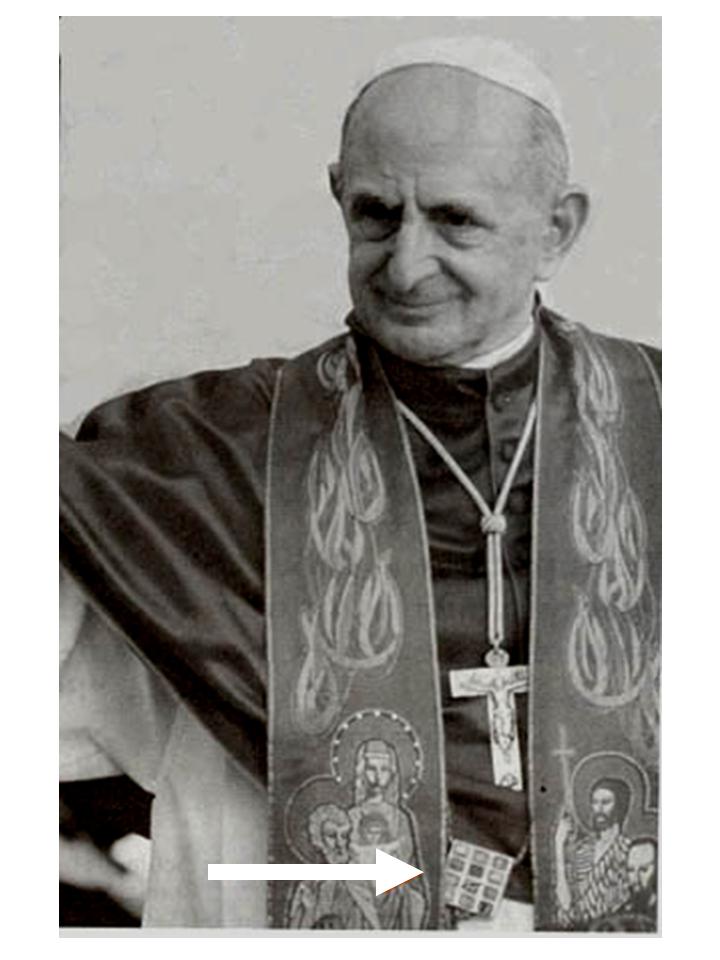 In October 2009 at a fake "canonization" ceremony of the vatican-2 cult, Ratzinger shows up wearing a mitre with an anti-Christ jew star on it. The jew star logo for the particular apostasy which goes by the brand name of "judaism" was adopted at the zionist conference in Switzerland in 1897.